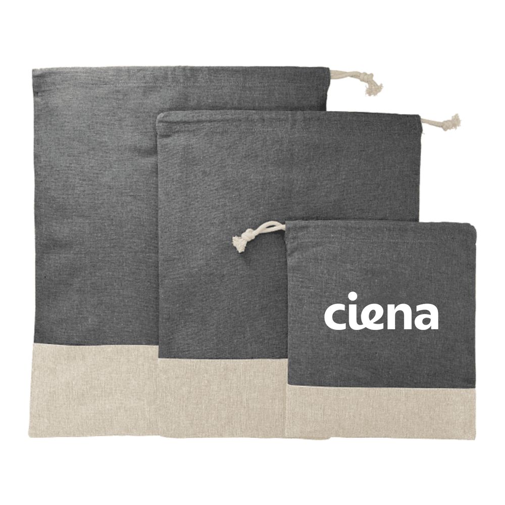 The recycled 3pc Travel Pouch Set features pre-consumer recycled cotton.