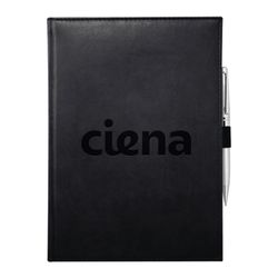 Built-in elastic closure. Ribbon page marker. Expandable accordion pocket. Includes 80 sheets of lined paper. Please note: When laser engraving this item, the color of the imprint may vary.