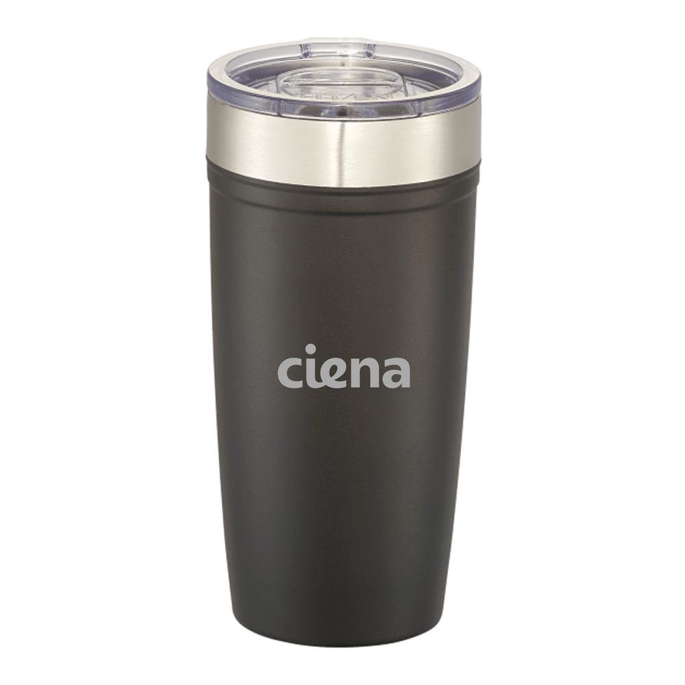 20 ounce Tumbler - Do not miss the most trendy tumbler of the year. Durable, powder spray color. Double-wall 18/8 grade stainless steel vacuum construction with copper insulation, which allows your beverage to stay cold for 24 hours and at least 8 hours for hot beverages. The construction also prevents condensation on the outside of the tumbler. Easy sipping, push-on lid with slide closure. Wide opening for comfortable filling and pouring.